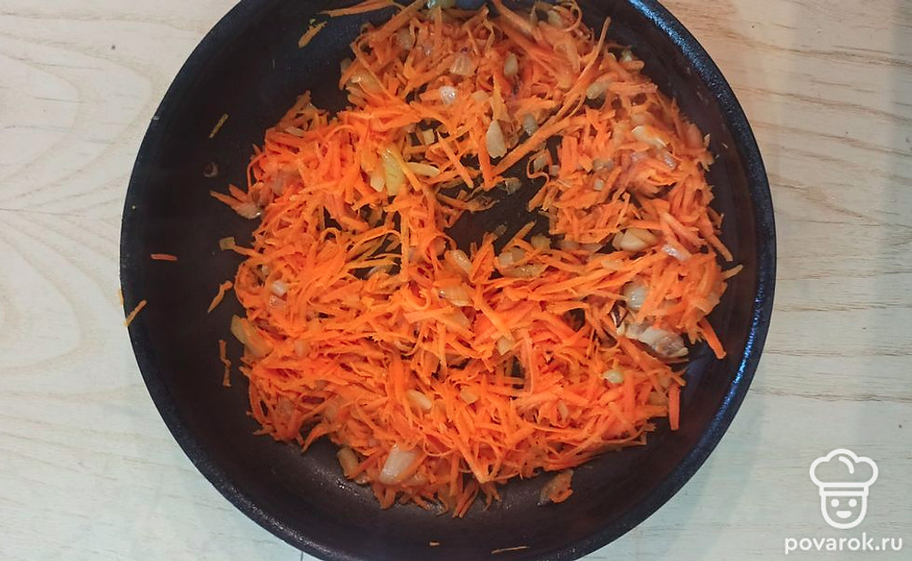 Когда картофель будет готов, добавить в суп пережарку, ребрышки, зелень, рис и варить минут 5.