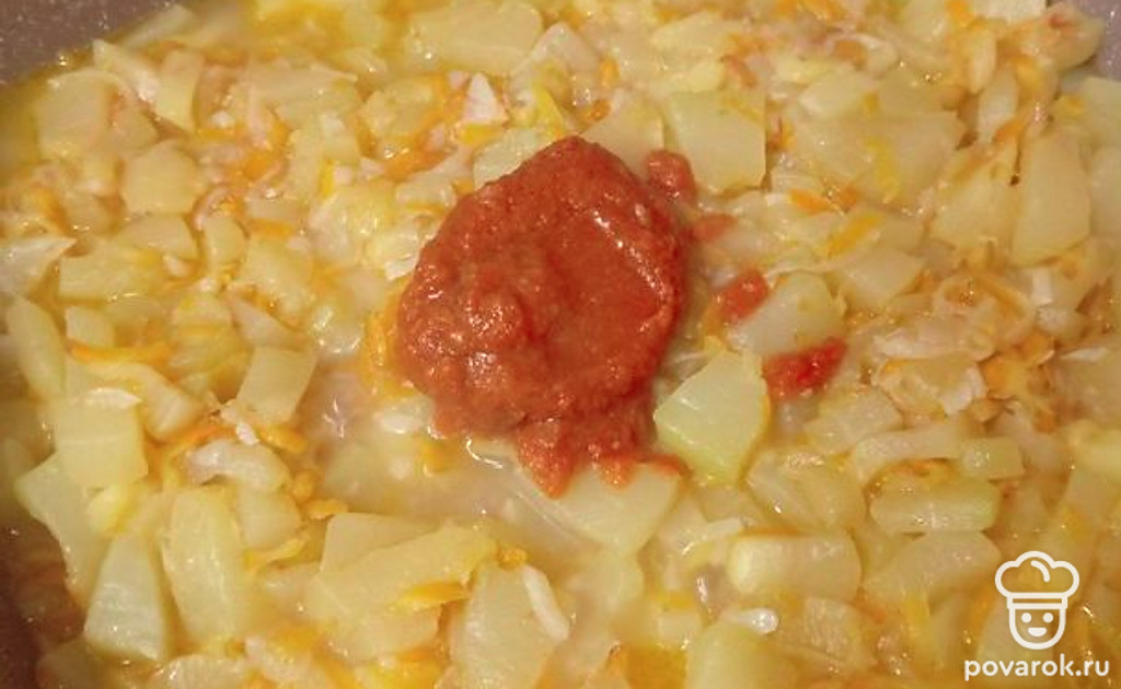 Добавьте томатную пасту.