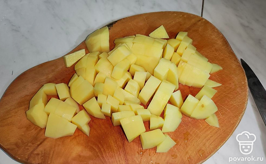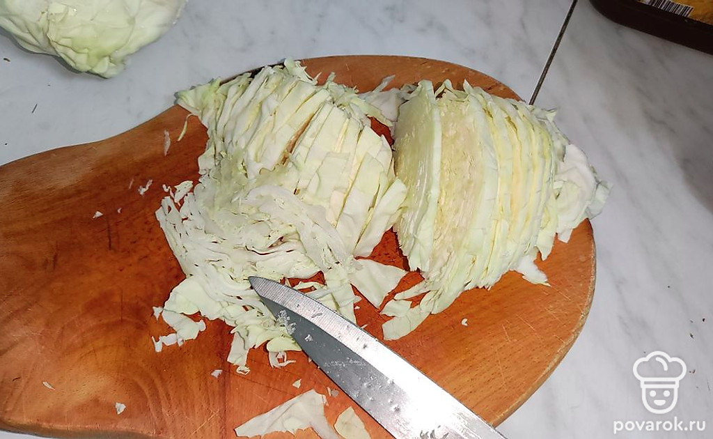 Капусту нашинкуйте. После закипания картофеля выложите в бульон.