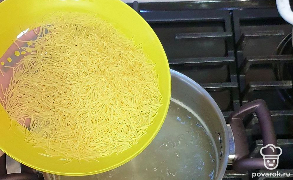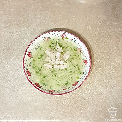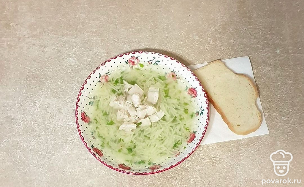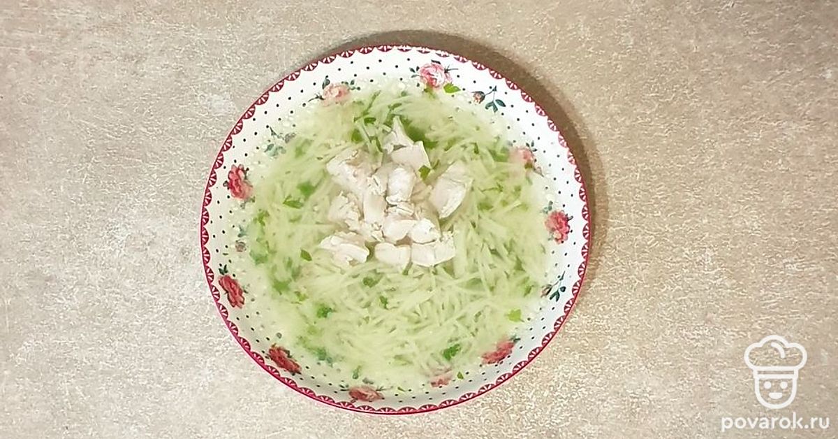Насыщенный бульон с добавлением вермишели и свежей зелени. Получается вкусным и полезным.