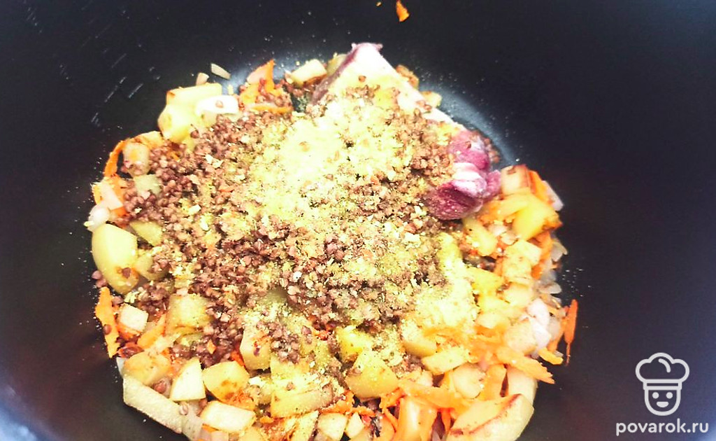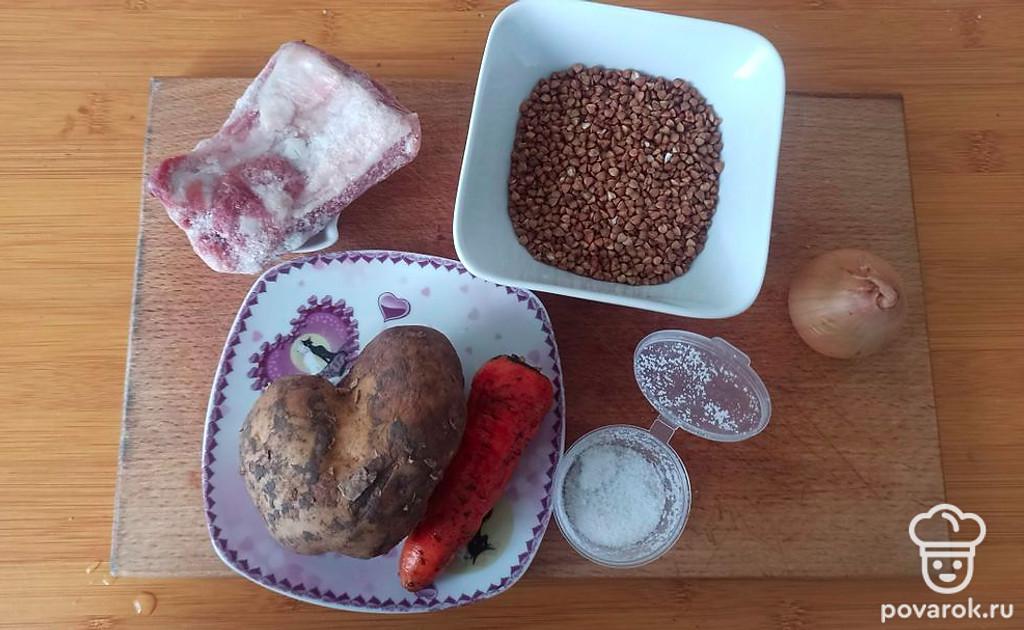 Ароматный гречневый суп со свининой на кости в мультиварке