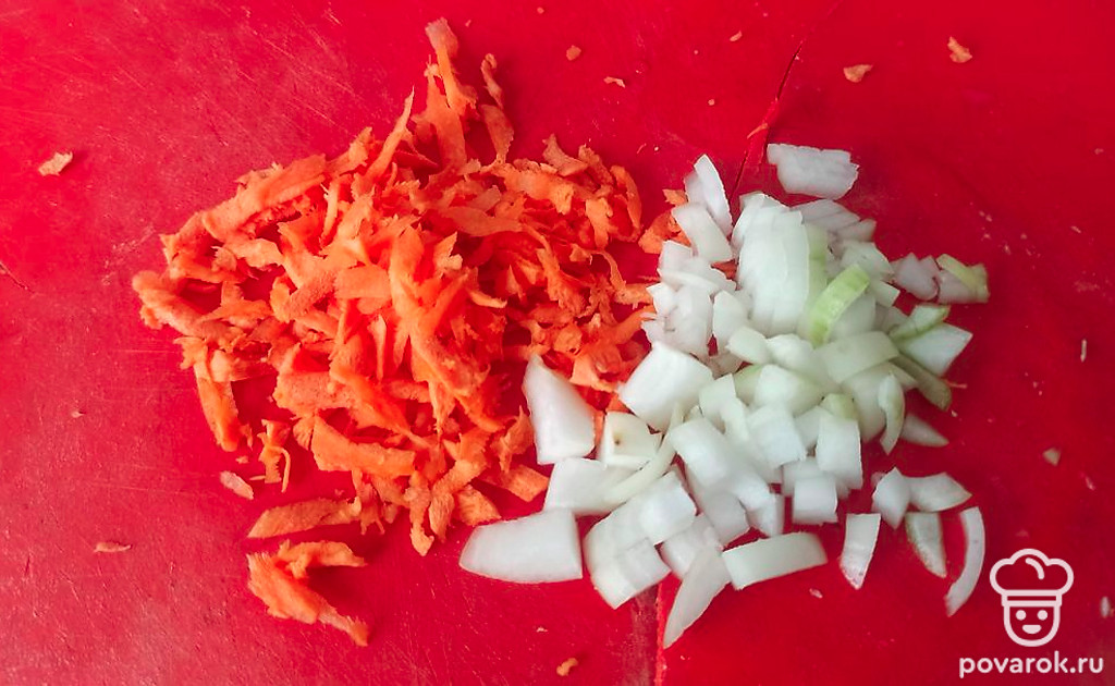 Добавьте лук и морковь, обжарьте еще 5 минут.