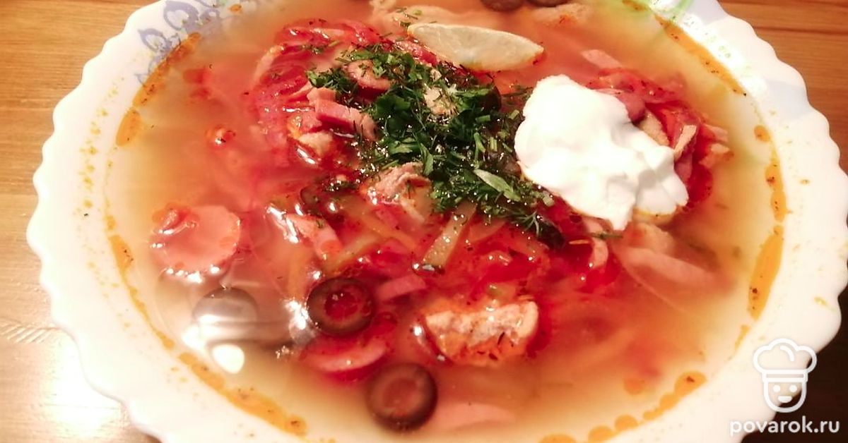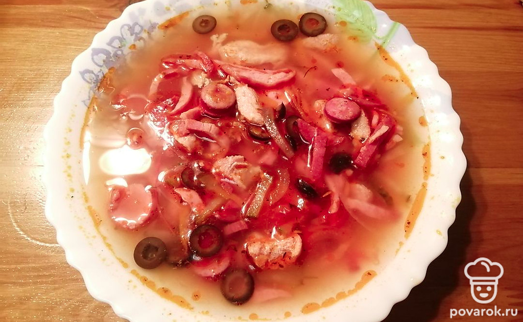 Простой рецепт солянки с маслинами