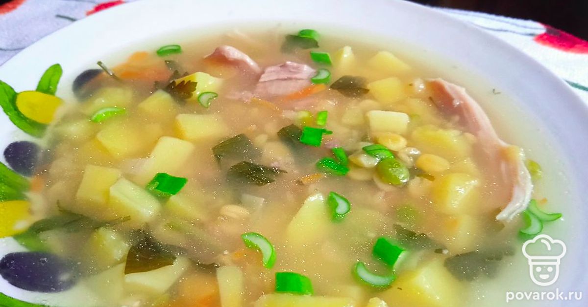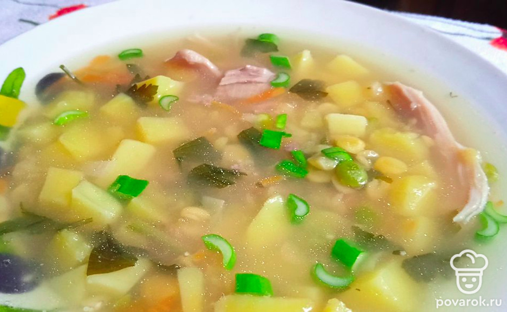 Суп из смеси бобовых с копченым окорочком