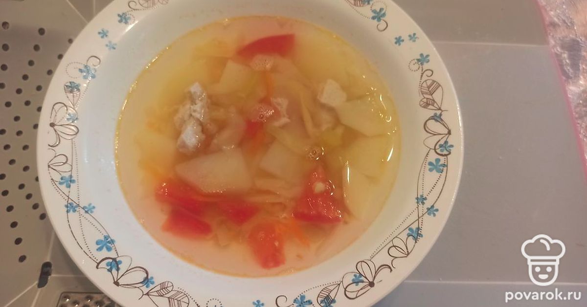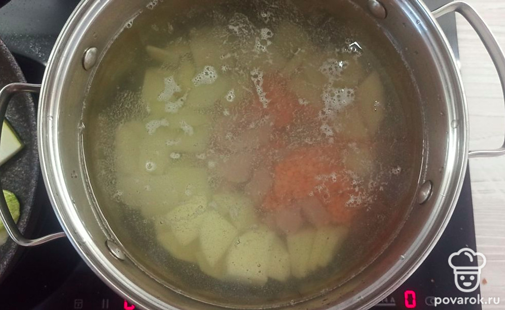 Далее выкладываем овощи в кастрюлю, солим, варим еще 10 минут и снимаем кастрюлю с плиты.