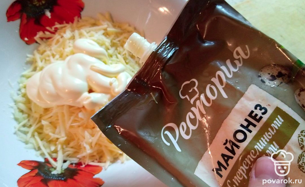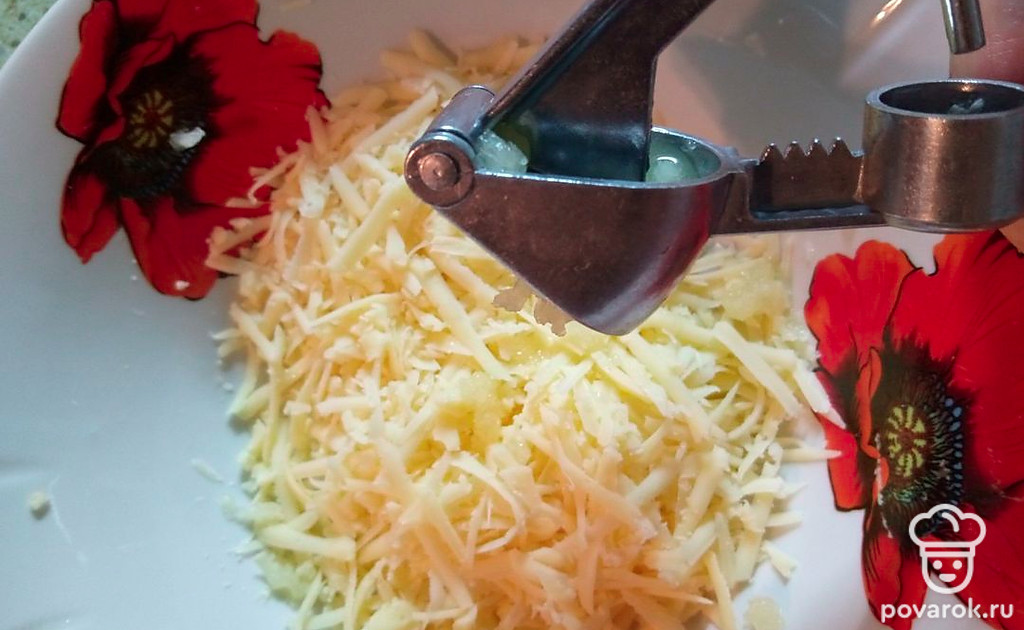 Чеснок почистите и пропустите через пресс. Соедините с сыром.