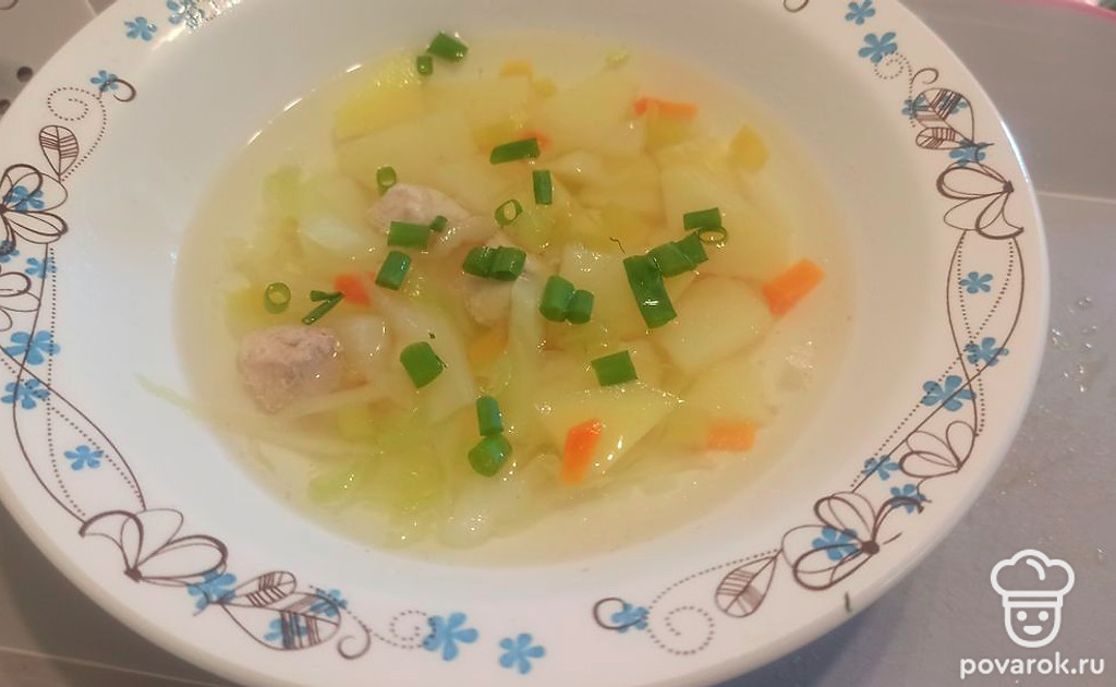 Овощи добавляем в суп и варим еще 15 минут, в конце солим и снимаем кастрюлю с плиты.