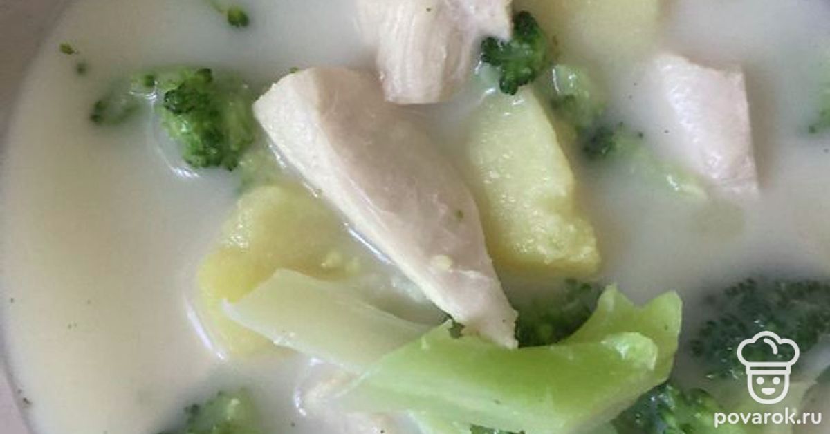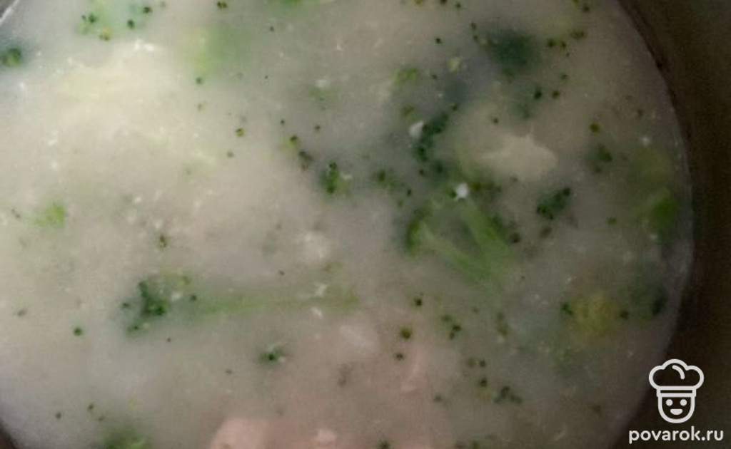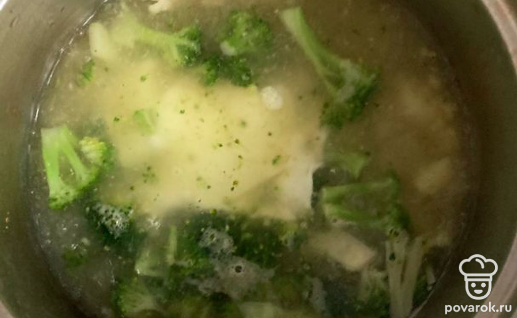 Нарезаем брокколи средними кусочками. Отправляем брокколи в суп за 5 минут до готовности.