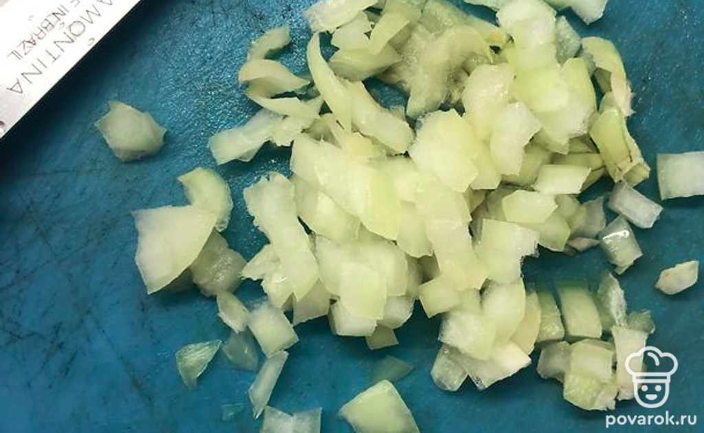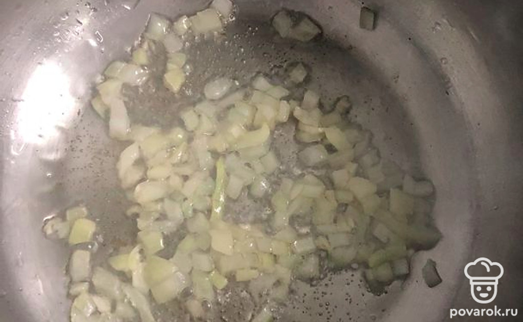 В кастрюлю налить пару ложек масла и положить лук. Слегка поджарить.