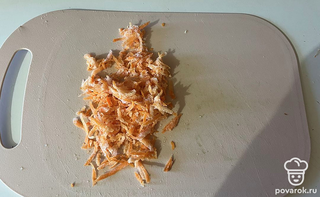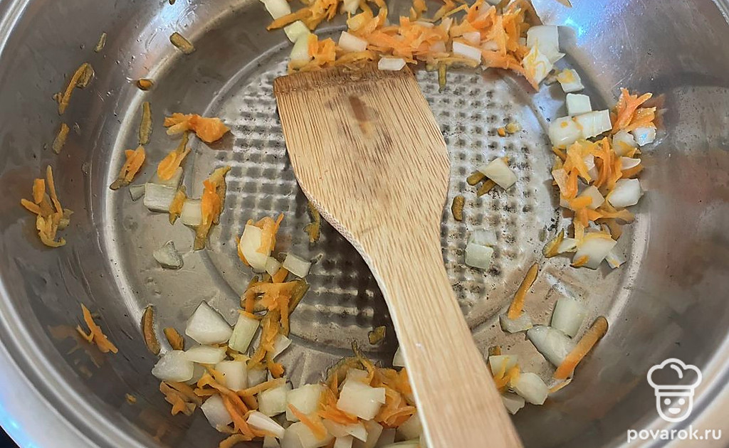 Лук с морковью обжарьте на растительном масле в течение 5 минут.