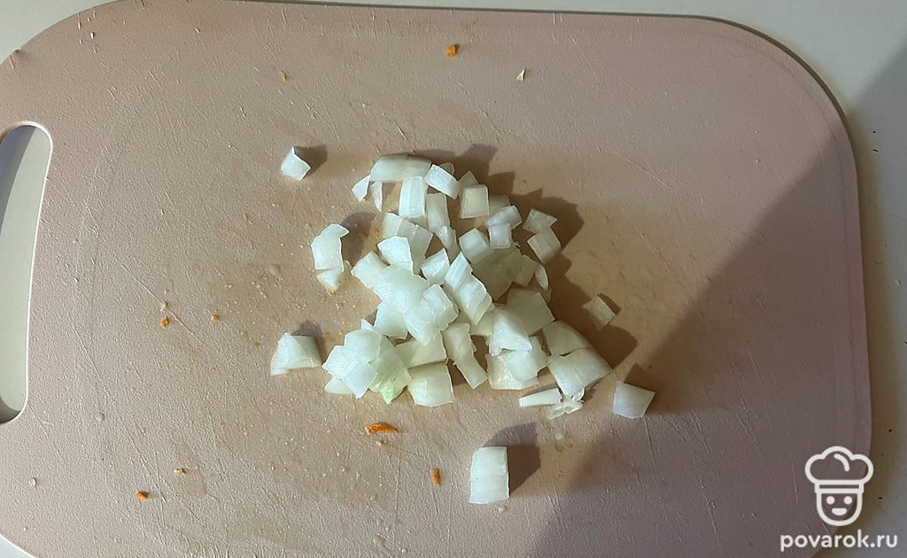 Лук очистите от шелухи и нарежьте мелким кубиком.