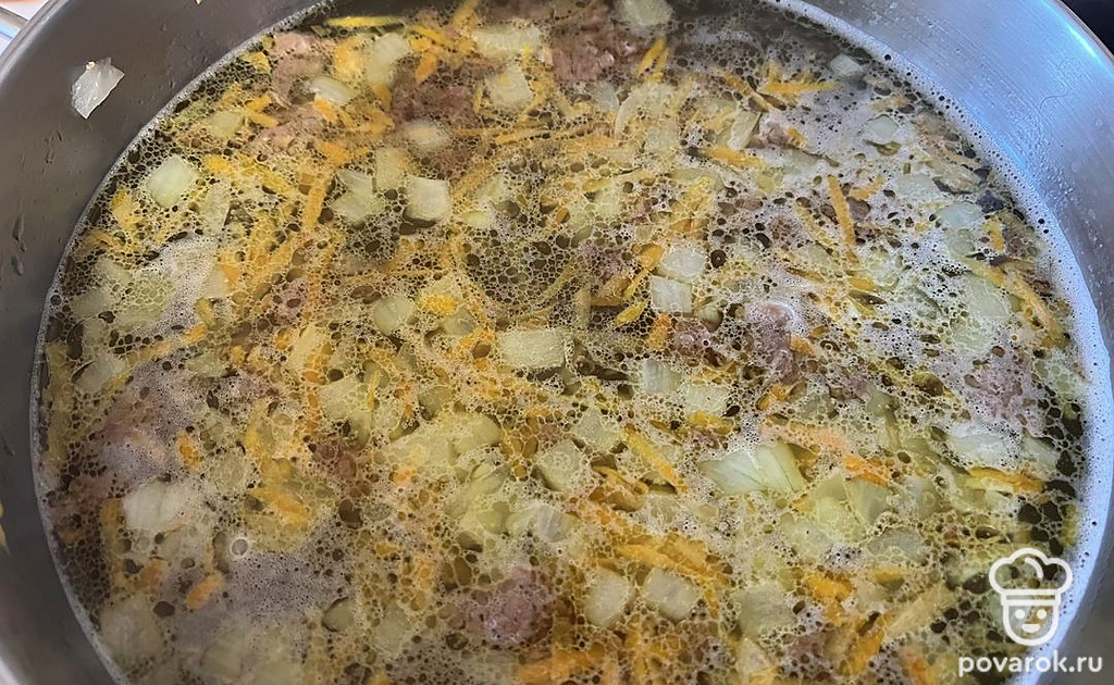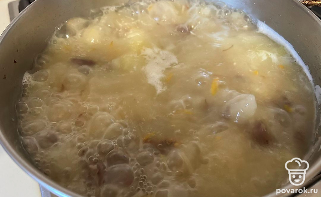 В кипящую воду добавьте вермишель. Варите суп под крышкой в течение 10 минут.