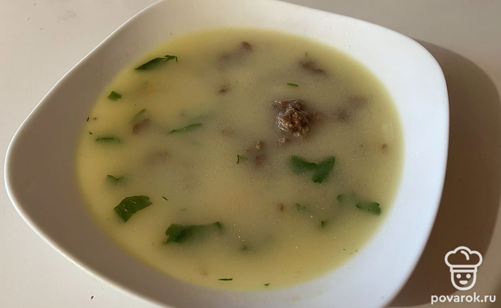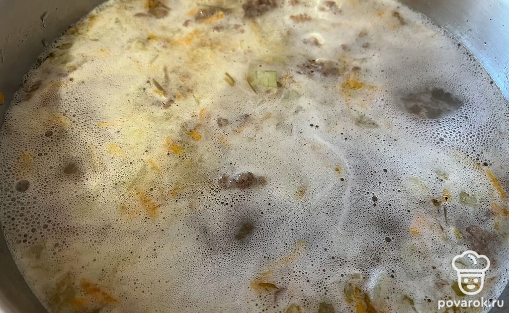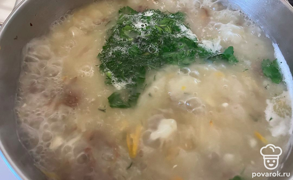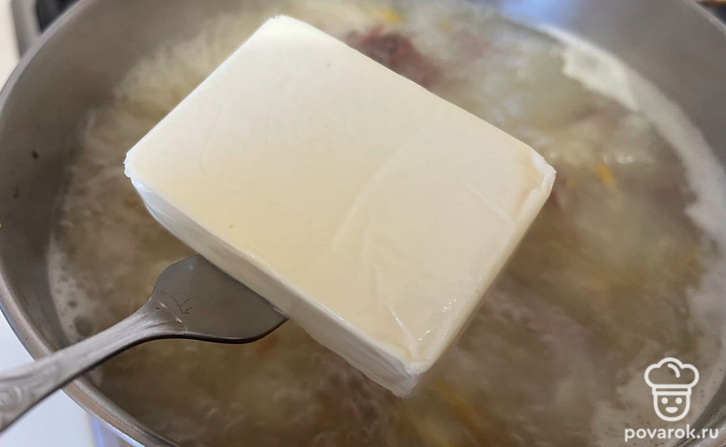Продолжайте варить суп с сыром под крышкой еще 10 минут.