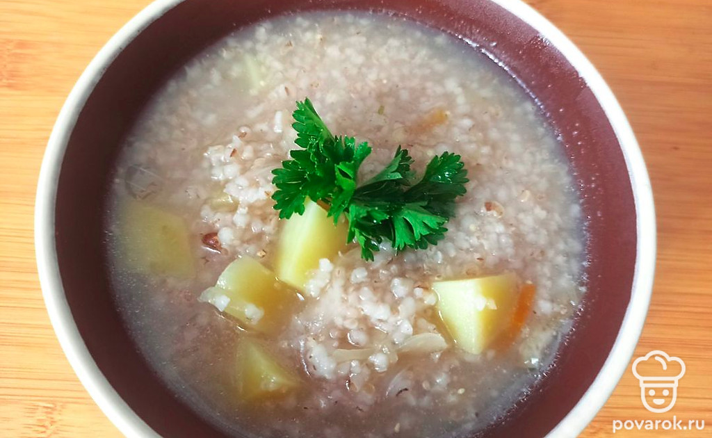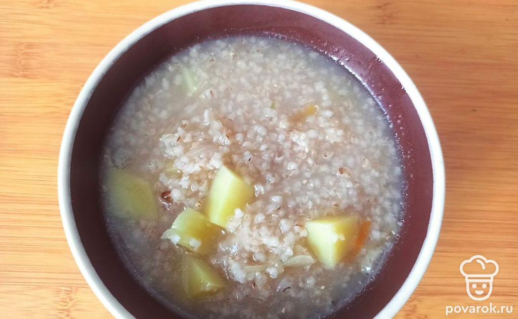 Ячневый суп с квашеной капустой и картофелем в мультиварке