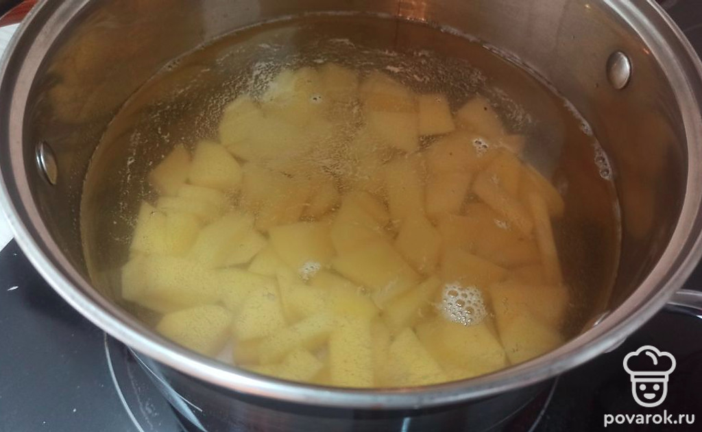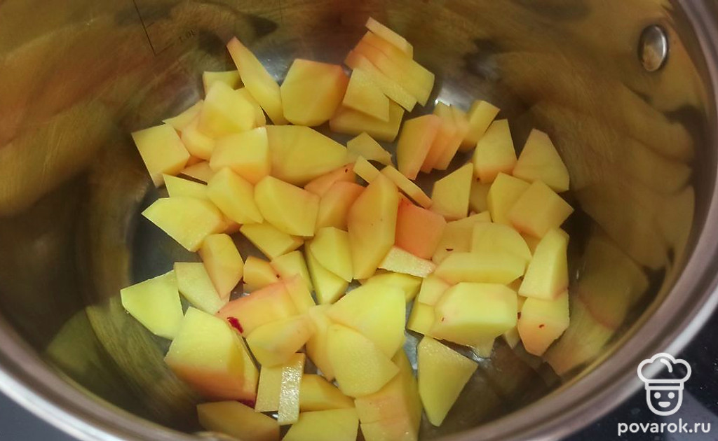 Заливаем картошку водой и ставим на средний огонь.
