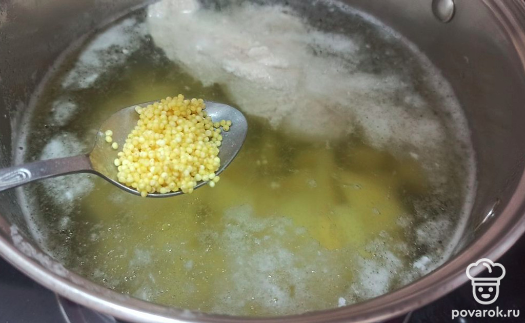 Добавляем в кастрюлю пшено.