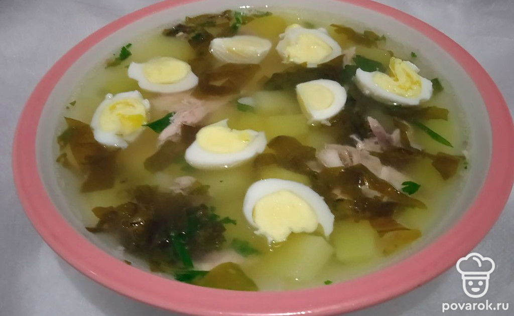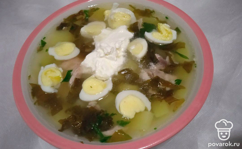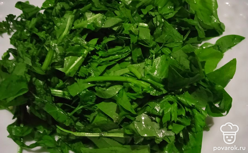 Добавьте нарезанный щавель и петрушку. Варите еще пять минут.