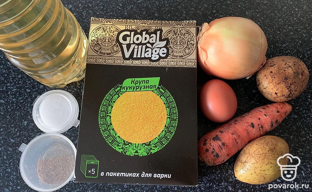 Соединить картошку и кукурузную крупу.