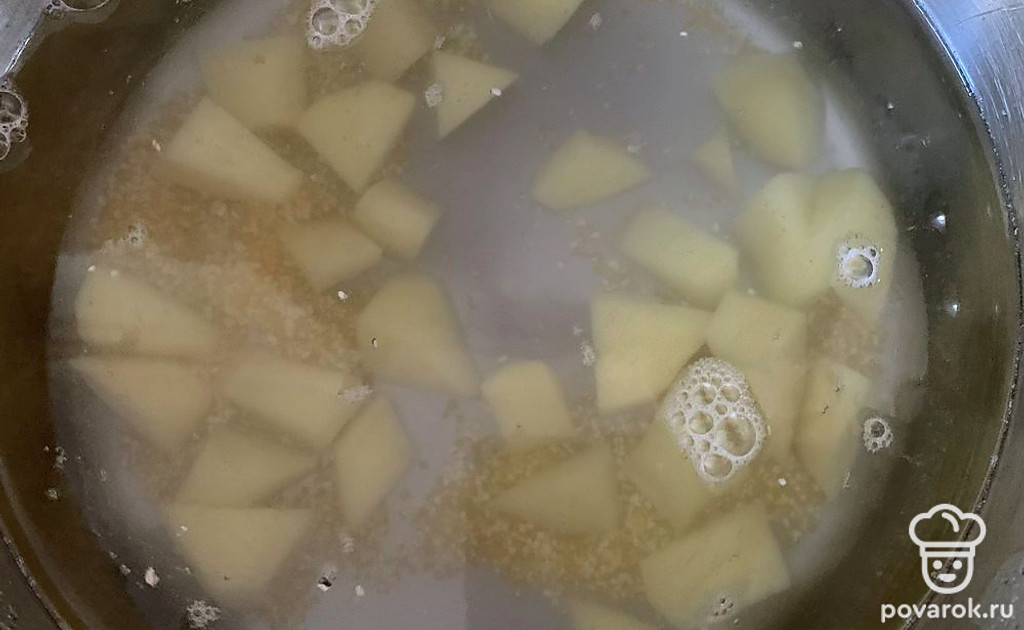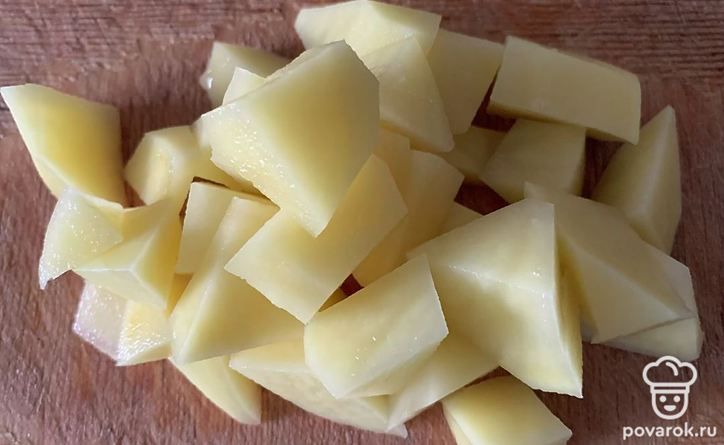 Картошку почистить и нарезать кусочками.