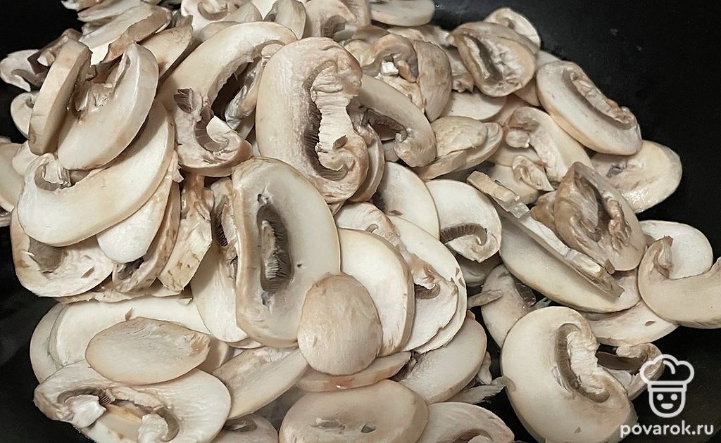 Обжарьте грибы на среднем огне до испарения жидкости.