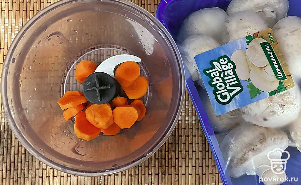 Морковь пробейте блендером и добавьте к грибам, обжарьте 10 минут. Добавьте мясо курицы и грибы в суп, варите 15 минут. В конце приготовления добавьте соль на свой вкус.