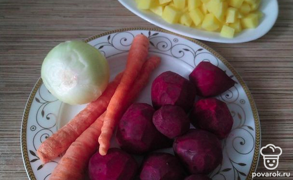 Подготовьте все ингредиенты. Если свекла крупная, хватит 1-2 корнеплодов.