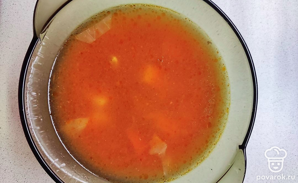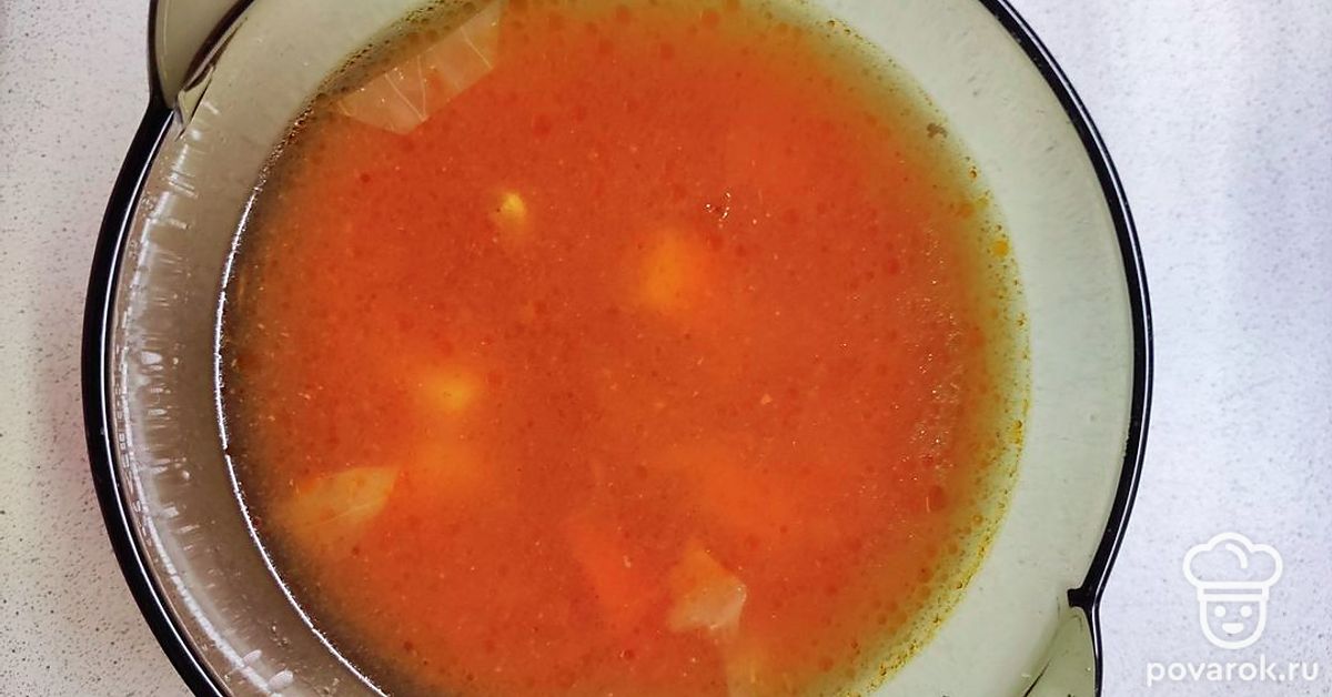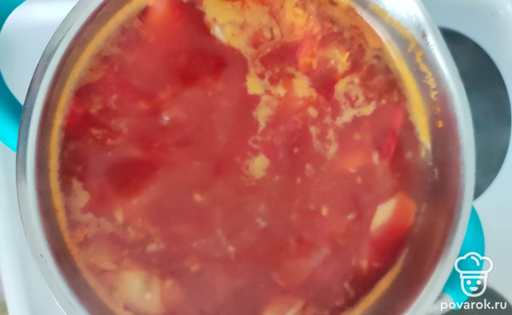 Также в бульон добавить зажарку из свеклы, моркови, лука, капусты и томатной пасты.