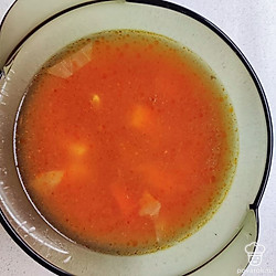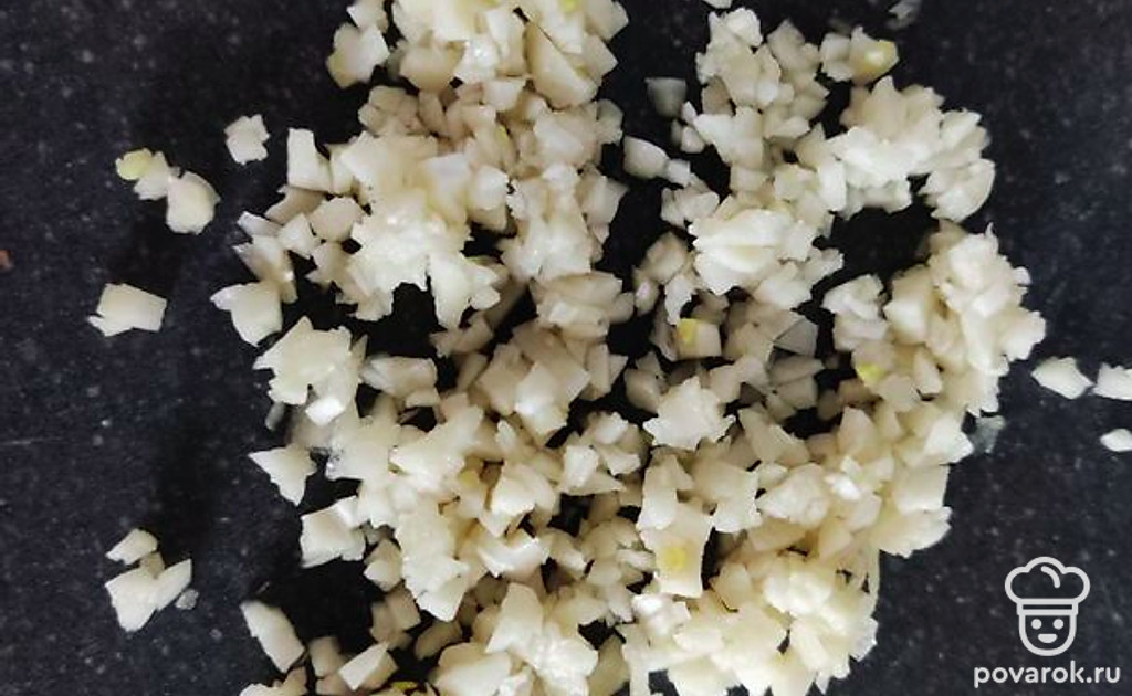 Чеснок измельчить ножом, выложить в бульон за 5 минут до готовности. В это же время добавить уксус. Попробовать и, если нужно, досолить и добавить специи по вкусу.