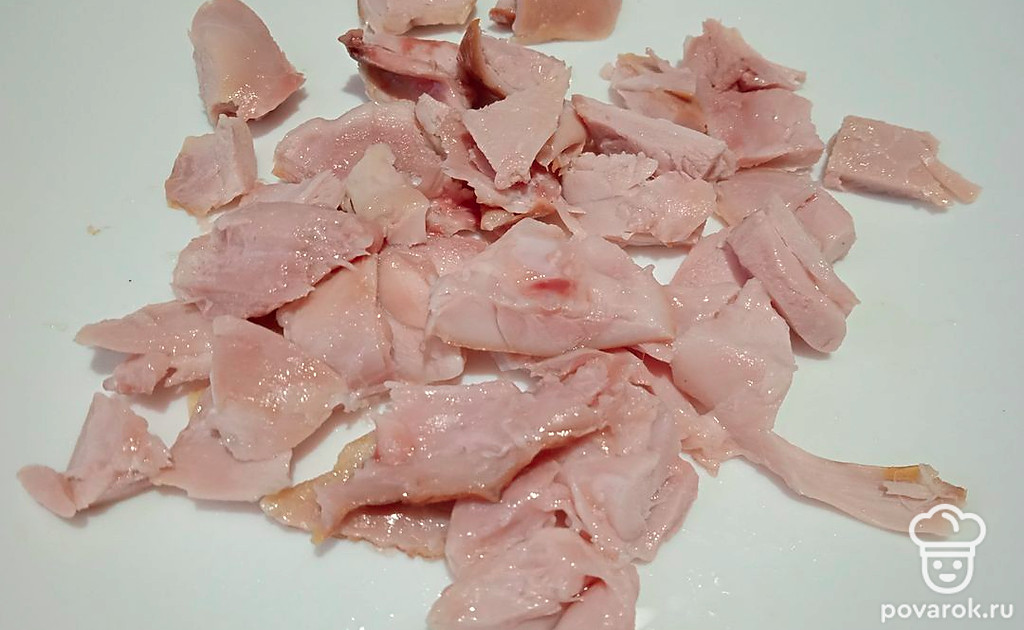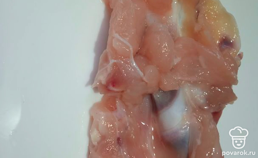 У куриной грудки обрежьте филе. Кость залейте водой, варите 20 минут.