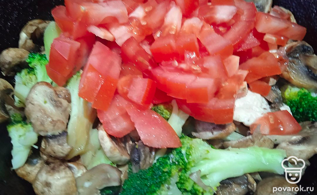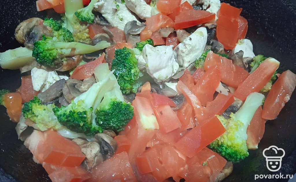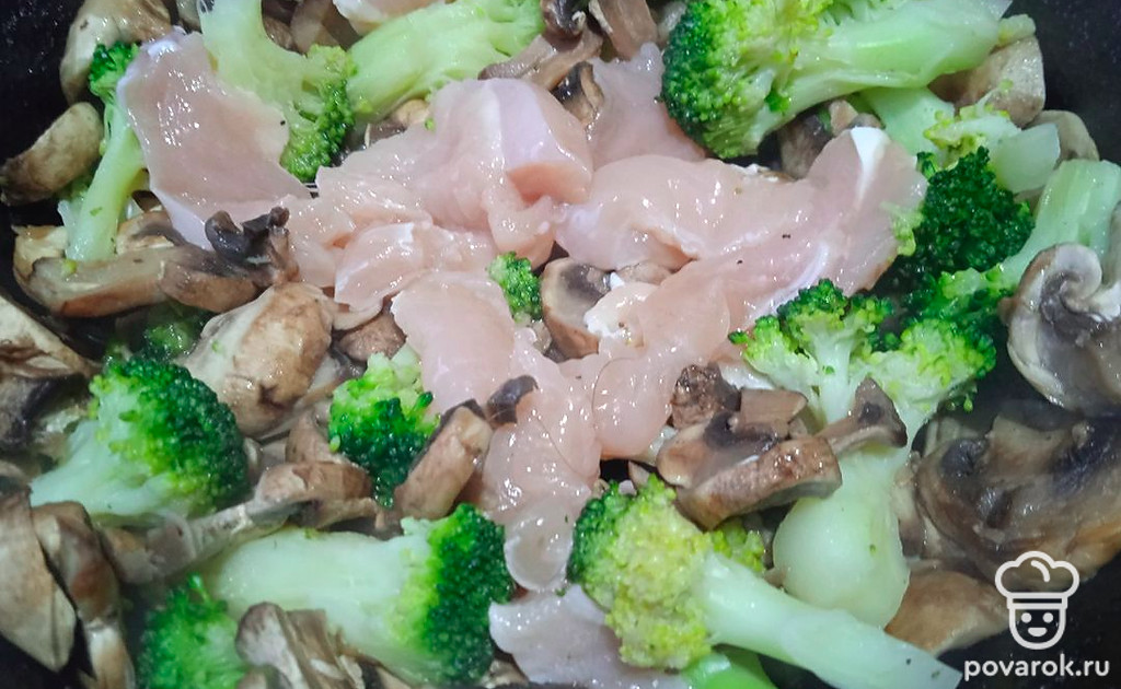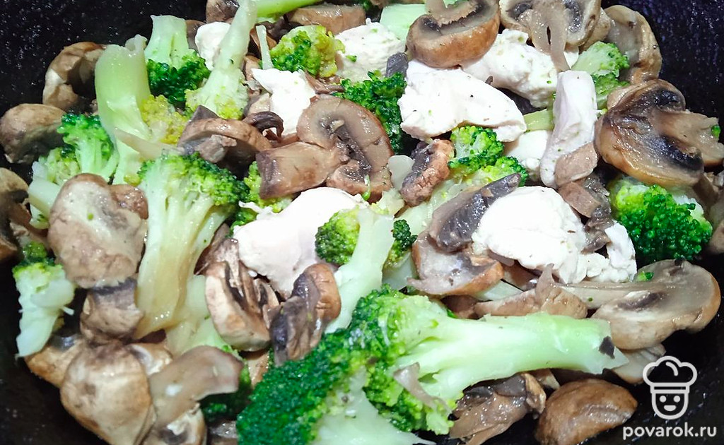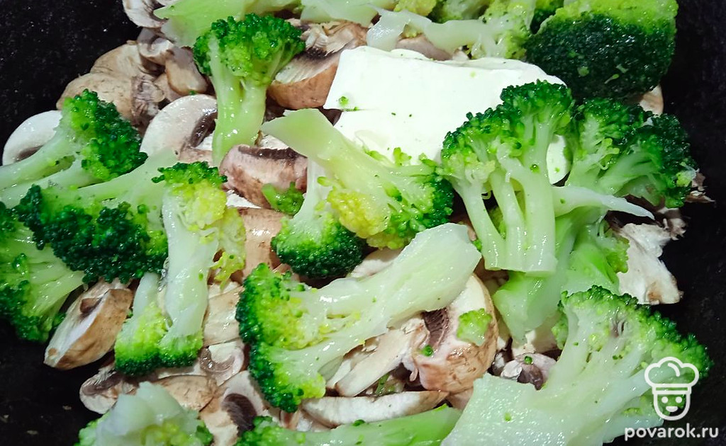 Добавьте брокколи. Накройте крышкой и тушите 10 минут.