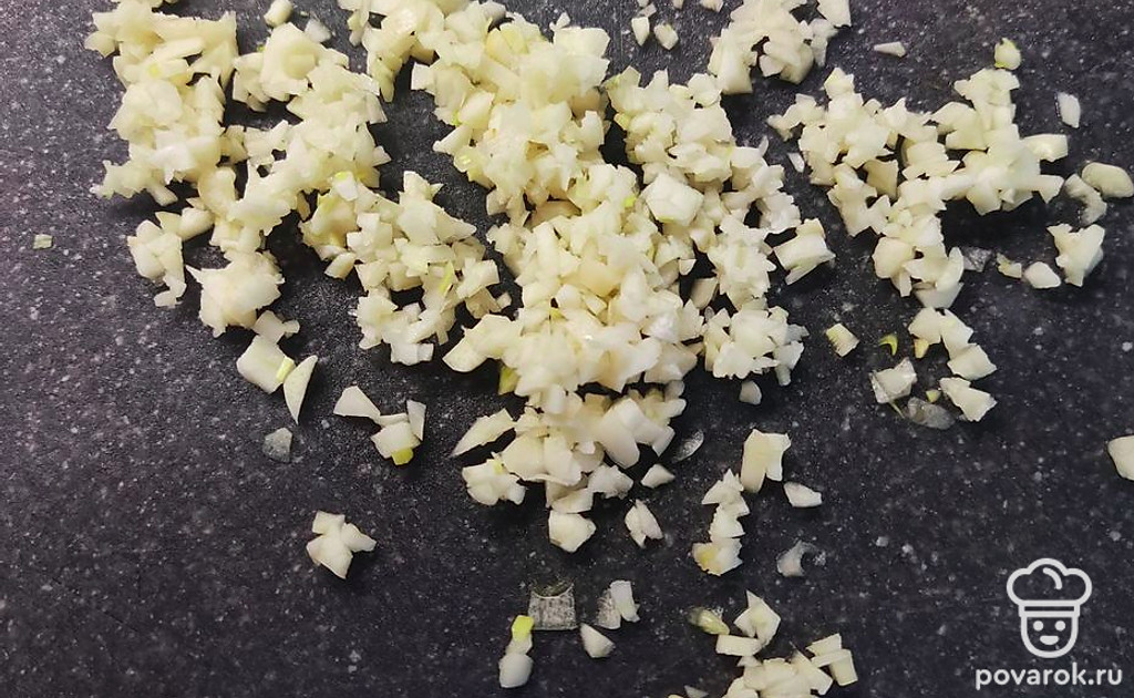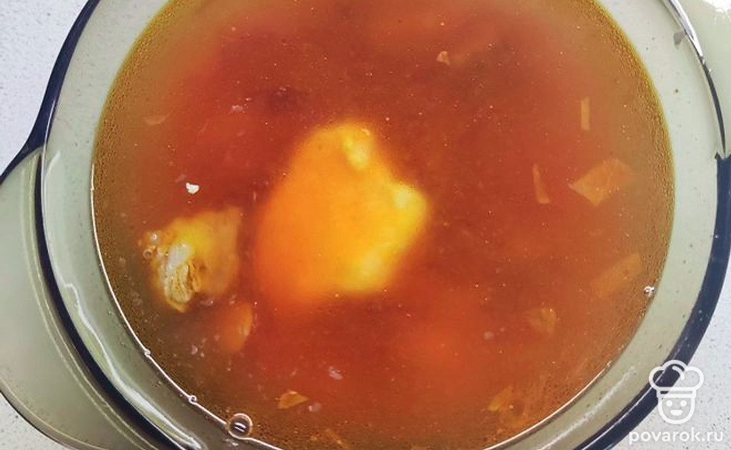 Чеснок мелко нашинковать. Добавить в суп. Попробовать суп на соль. Досолить, если нужно. Добавить уксус. Дать покипеть еще 10 минут.
