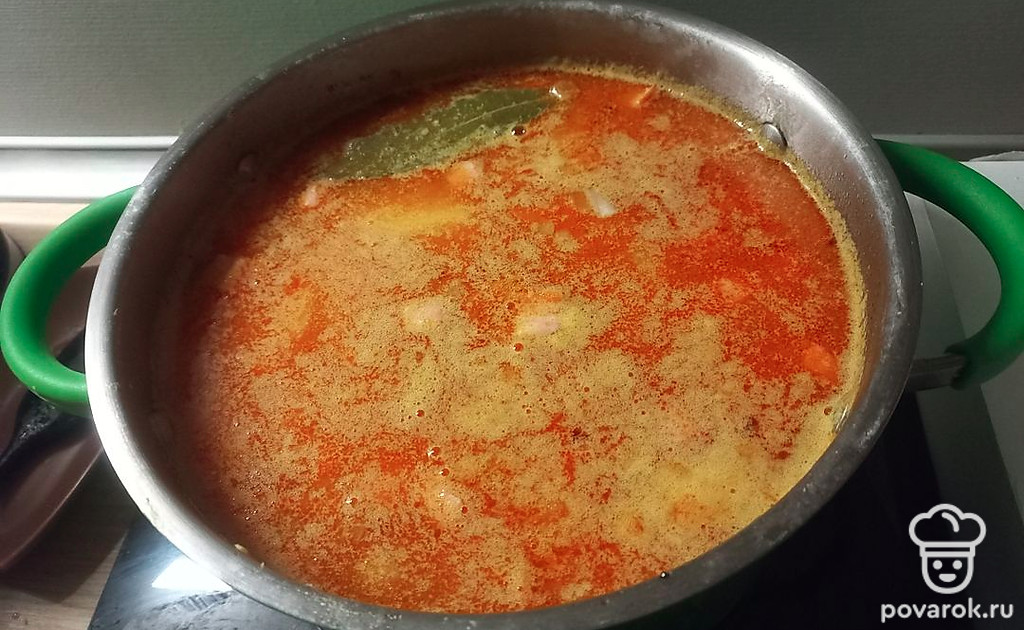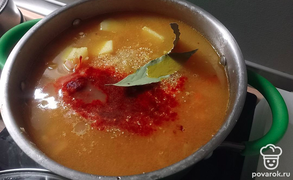 За 5 минут до готовности добавляем специи и лавровый лист.