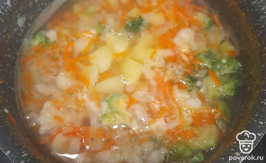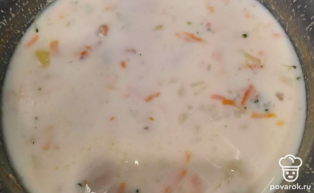 Когда овощи сварятся, добавить молоко и сыр.