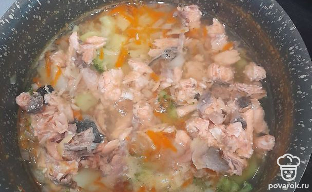 Финская уха с красной рыбой и брокколи