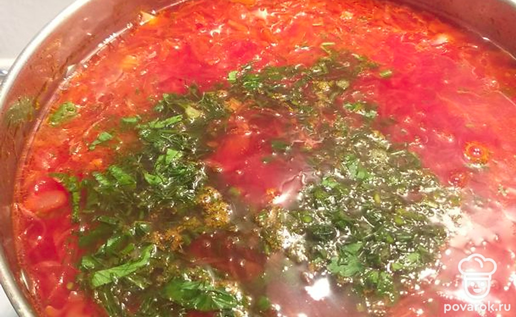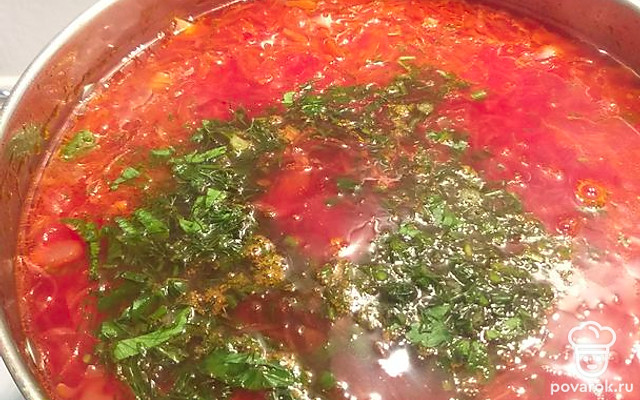 Всыпьте зелень и дайте 5 минут покипеть. Затем выключите и дайте супу настояться. Приятного аппетита.