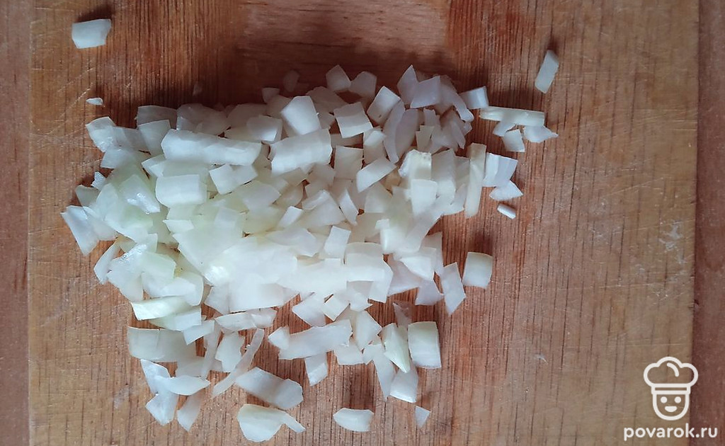 Нарезаем картофель кубиками. Кладем в кастрюлю.