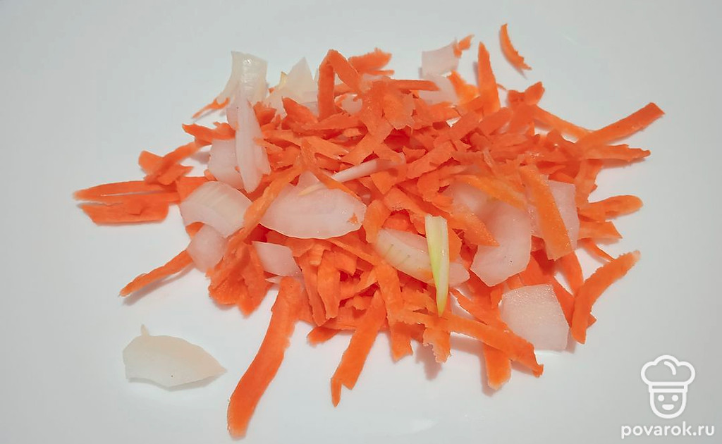 Добавьте нарезанный репчатый лук и натертую на терке морковь. Варите еще 10 минут.