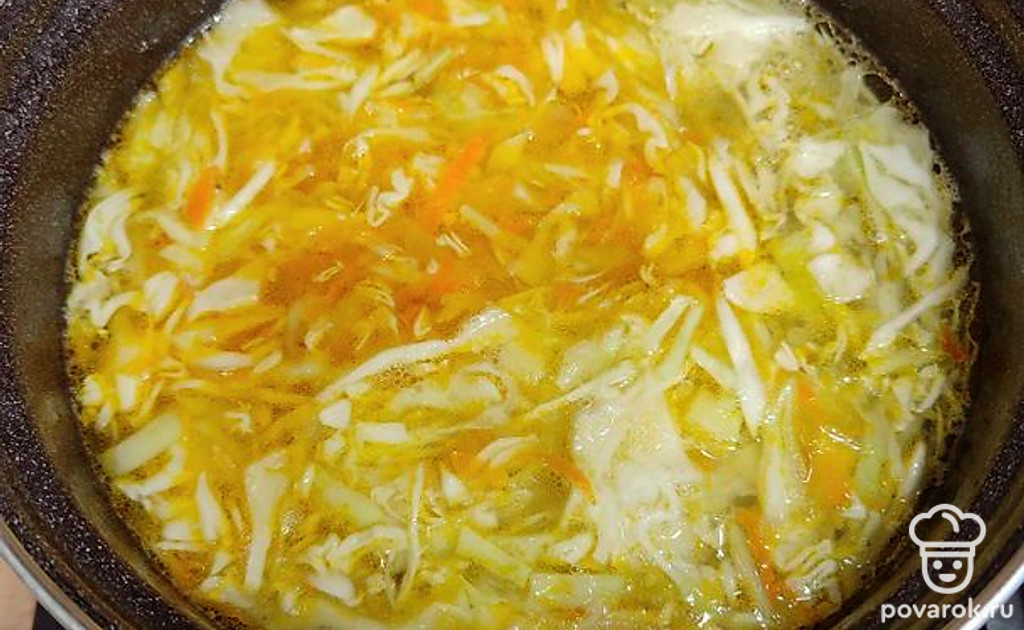 Отправить поджарку в кастрюлю с супом.