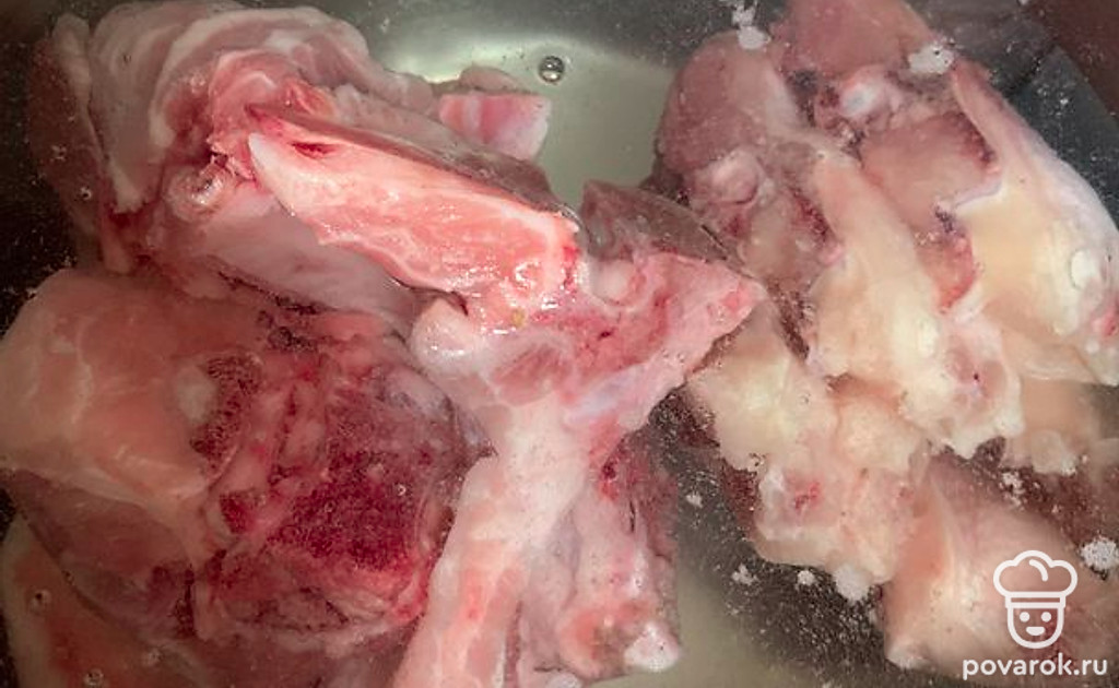 Суповой набор моем, выкладываем в кастрюлю с холодной водой и ставим на огонь.