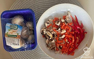 Овощи и грибы помойте, почистите и нарежьте мелко.