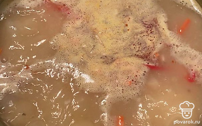 Влейте кокосовое молоко. Дождитесь закипания и варите еще 2 минуты.