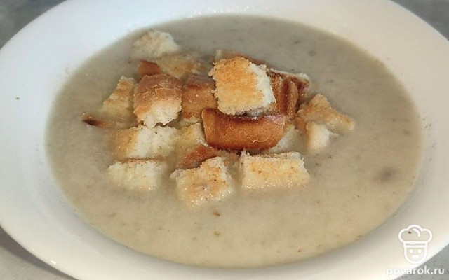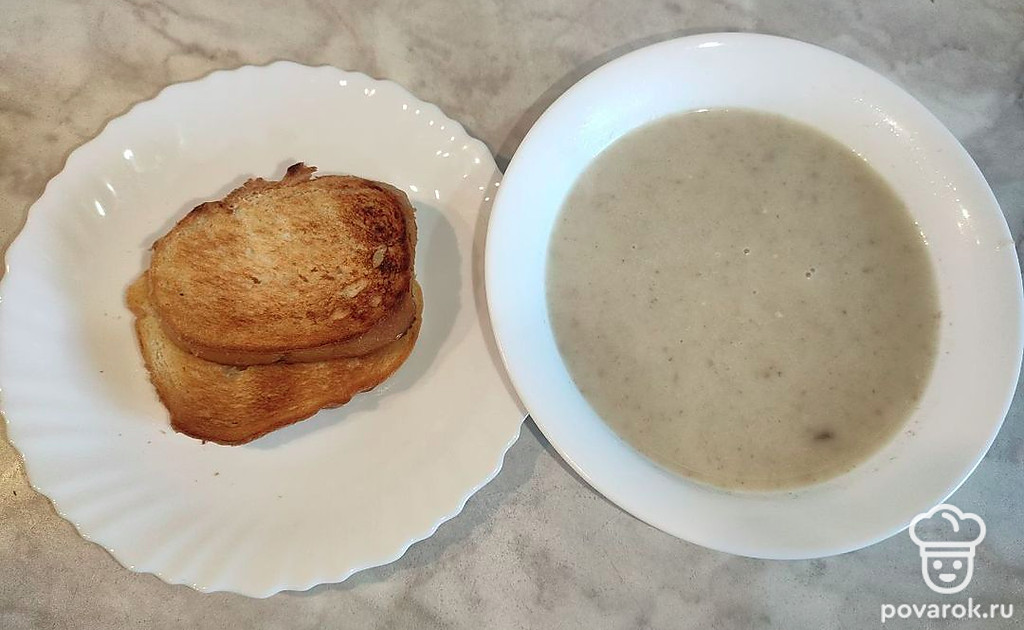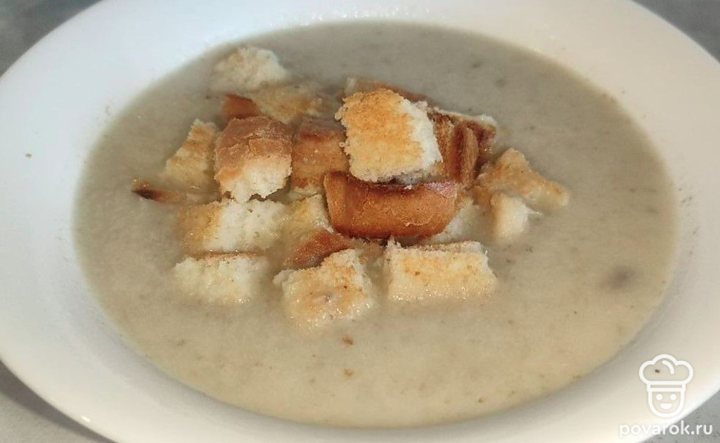 После того, как картофель будет готов, отправьте в кастрюлю грибы в сливках. Все вместе пробейте блендером до однородной консистенции.