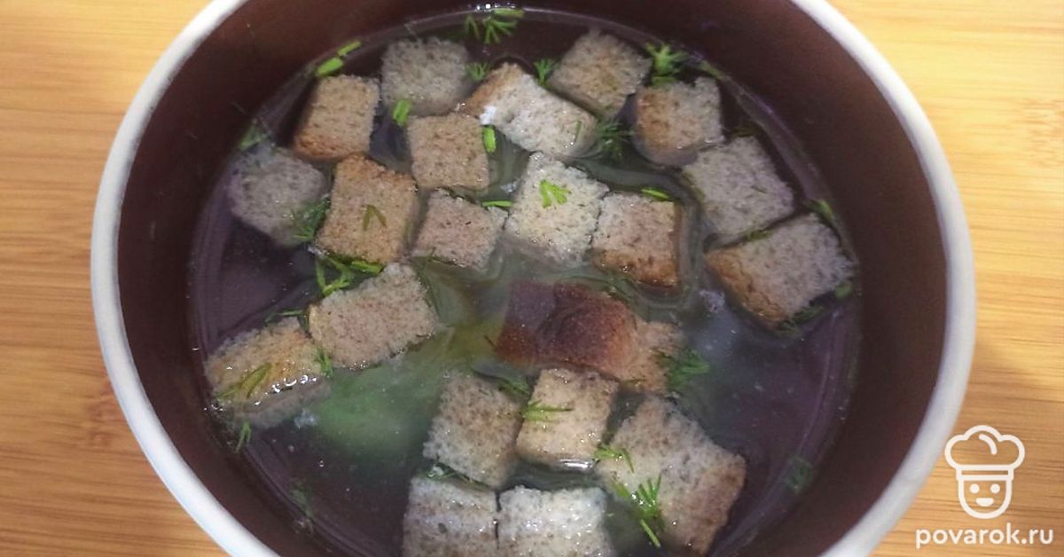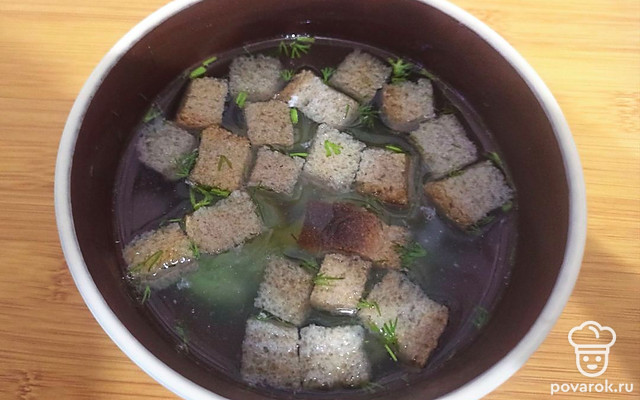 Куриный суп с сухариками и зеленью в мультиварке