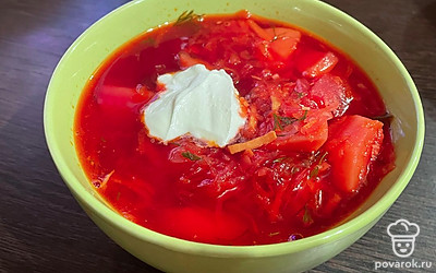 Перед подачей дайте борщу немного настояться, подавайте со сметаной.