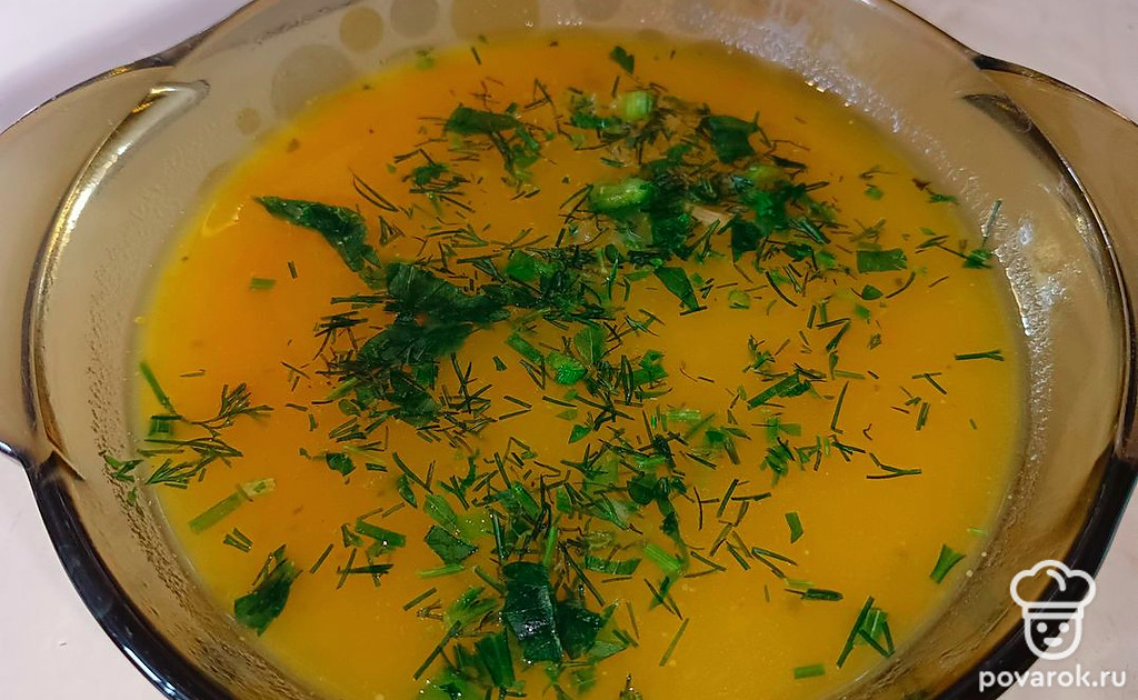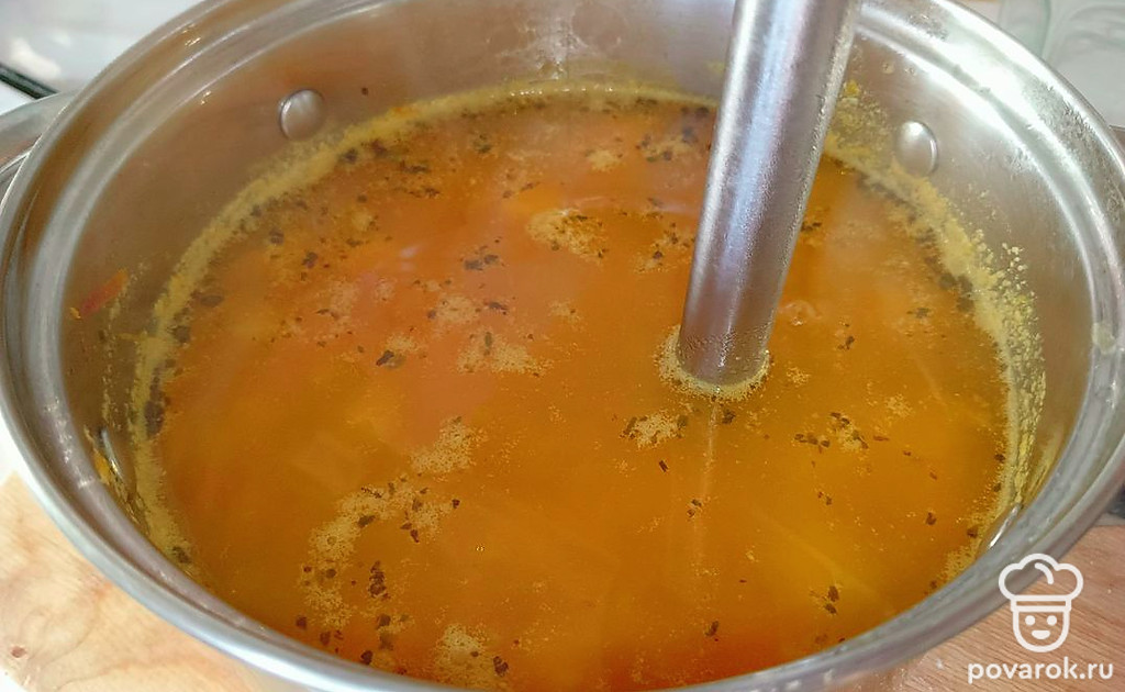 Варите 20 минут на медленном огне (под крышкой). Готовый суп пробейте блендером.