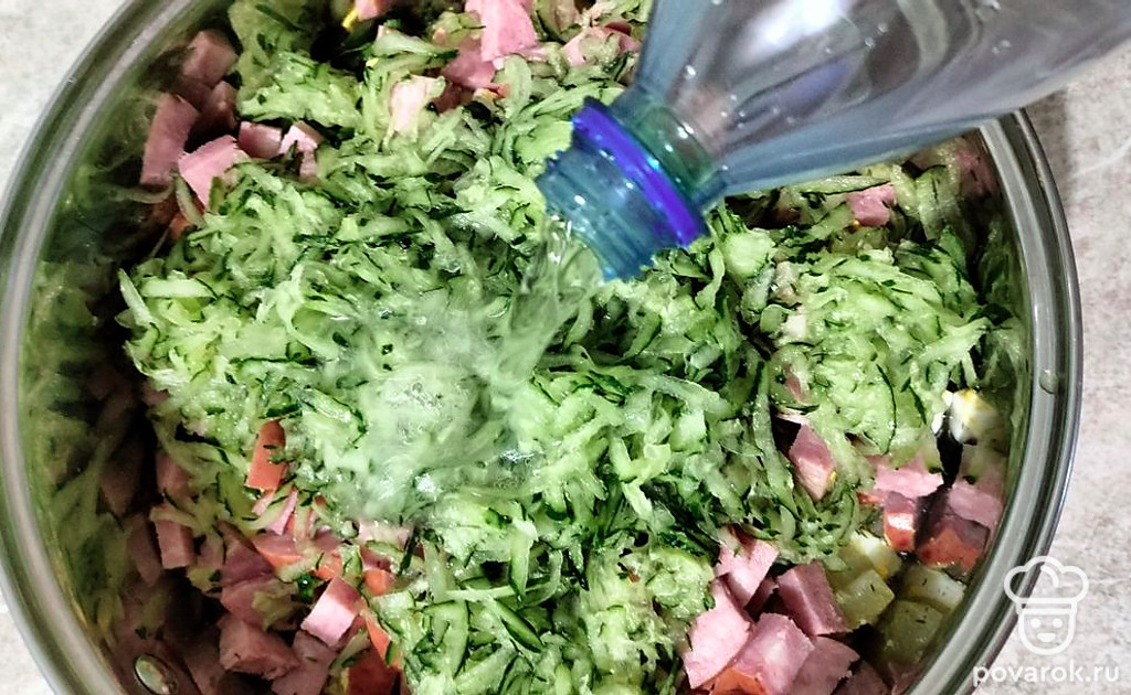 Окрошка на минеральной воде, получается вкусной и ароматной. Готовится легко, а съедается быстро. Практически все ингредиенты я натираю на терке, так окрошка получается более нежной.