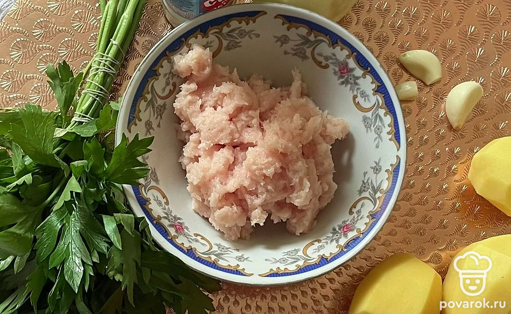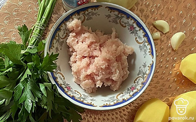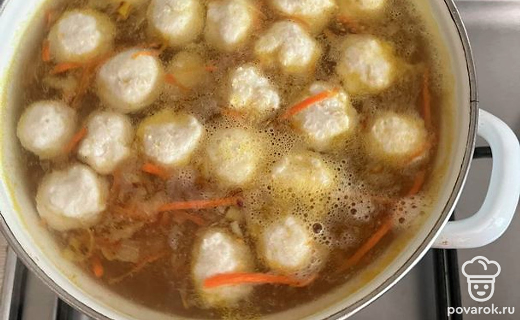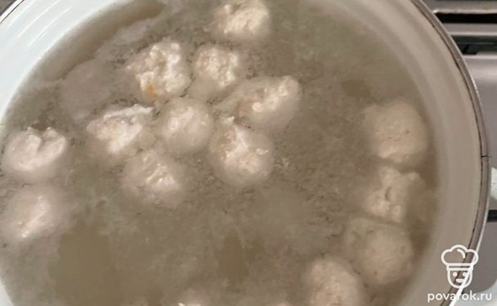 В кастрюлю налейте воду, доведите до кипения. Фарш немного посолите. Добавьте чеснок, пропущенный через пресс. Хорошо все перемешайте и сформируйте небольшие фрикадельки. Опускайте в кипящую воду, варите 10 минут.
