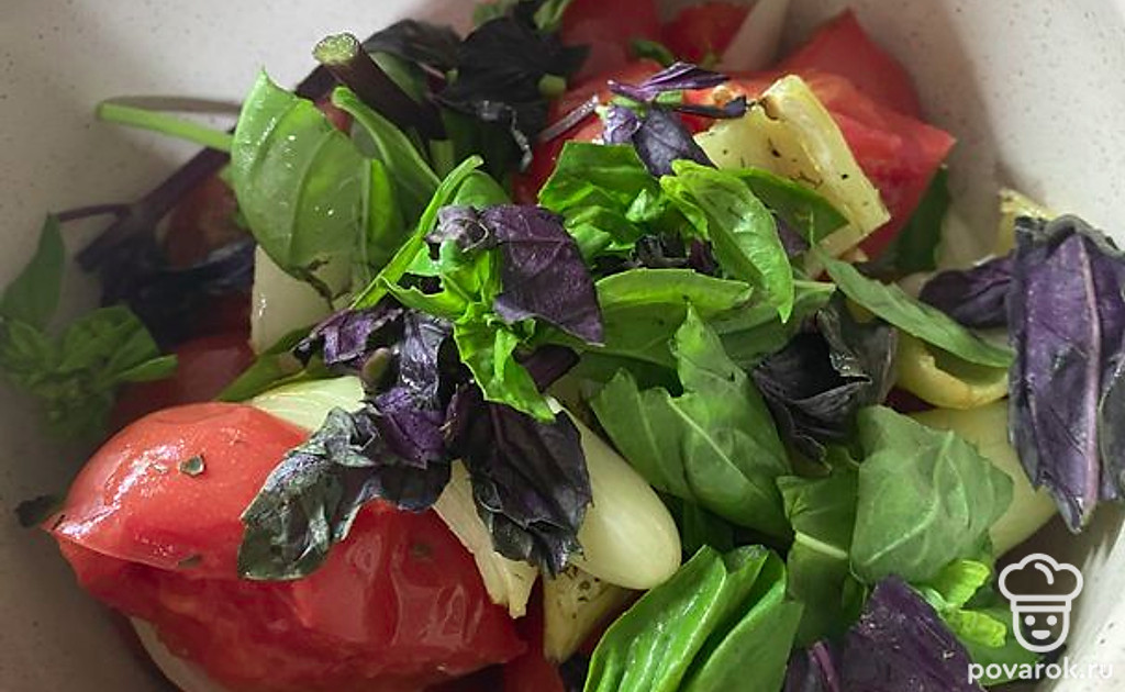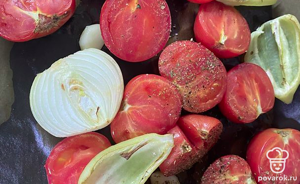 Блюдо получается очень насыщенным, неимоверно ароматным за счет того, что все овощи предварительно запекаются в духовке. Рецепт для всех, кто любит помидоры в любом виде.