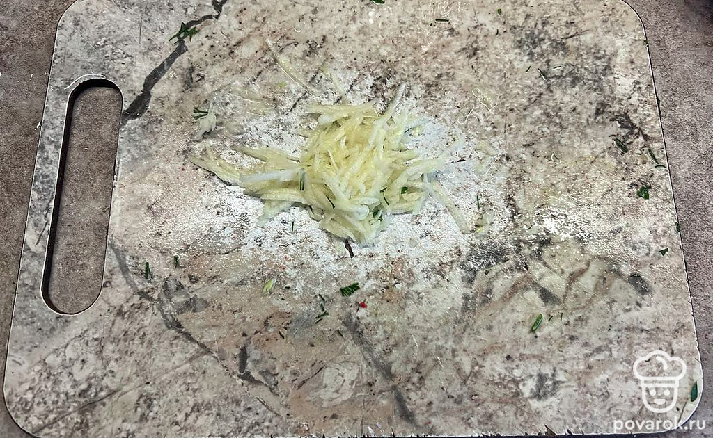 Чеснок натрите на мелкой терке и добавьте к остальным ингредиентам.