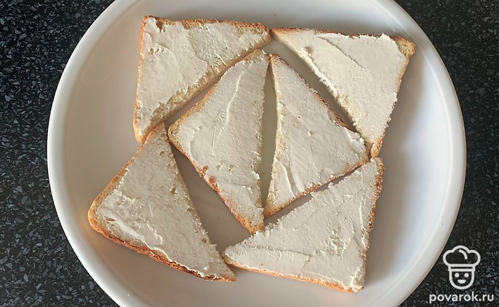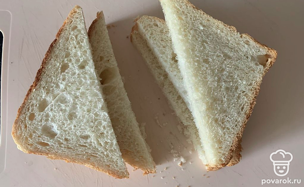 Хлеб разрежьте на кусочки и подсушите в духовке 10 минут.